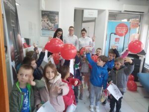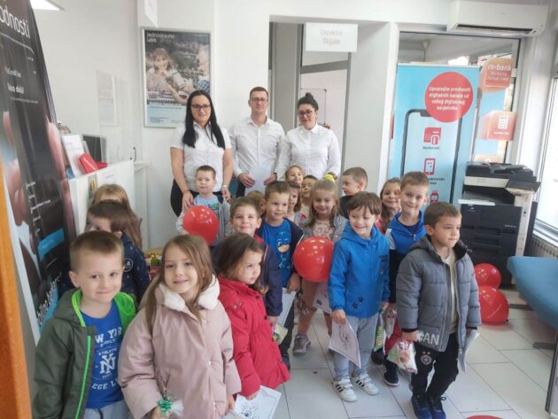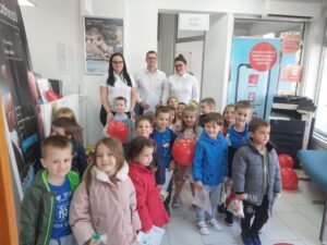Поводом Свјетског дана штедње 31.10. `другари средње и старије вртићке групе, посјетили су Уникредит и Рајфајзен пословницу, гдје су им љубазни домаћини појаснили чему служи банка, ко ради у банци, како се у банци може штедјети и сл. Открили су чему служе штедни рачуни, банкомати и зашто су нам банке потребне. Прије одласка запосленици банке су сву дјецу развеселили пригодним поклонима.