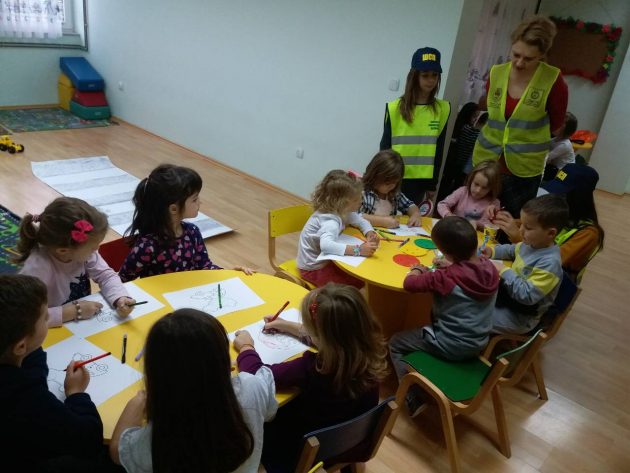 „На које свјетло се прелази улица,преко чега прелазимо улицу и зашто је важно да се дјеца не играју на коловозу, малишанима из дјечијег вртића „Душко Радовић“ објаснили су стручни сарадник из „Ауто-мото савеза РС“ и другари из Саобраћајне школске патроле. Радионица је прилагођена дјечијем узрасту и они су на едукативан и њима забаван начин учили о безбједносним ризицима који могу да им се задесе у животу али и у саобраћају,посебно предшколцима који ће наредне године у септембру морати сами да се крећу у саобраћају на путу од куће до школе.