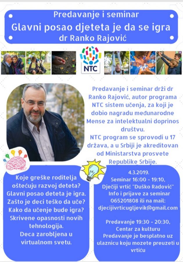 Др Ранко Рајовић (аутор НТЦ програма) ће одржати семинар и предавање у Угљевику 04.03.2019. године.