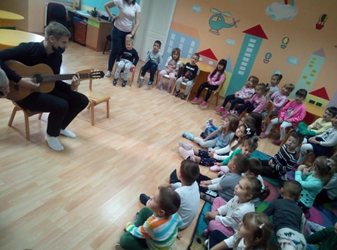Претходних дана посјетили су нас другари из Музичке школе „Стеван Стојановић Мокрањац“ , те су нам том приликом представили музичке инструменте: хармонику, гитару и виолину. Уз извођење дјечијих пјесама чули смо како одређени инструмент звучи, те смо и сами имали прилику да свирамо. Ми смо упознавање са музичким инструментима наставили израдом бубњева, звечки, гитара и ритмичких удараљки. Циљ ових активности јесте развијање музичких способности код дјеце, од којих ће дијете имати пуно користи, како у дјетињству тако и касније током живота.