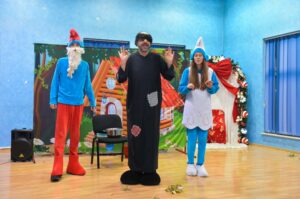 Док су наши малишани и ове Нове године нестрпљиво чекали Дједа Мраза и своје заслужене поклоне, забављали су их  добро познати јунаци  Штрумпфови и Гаргамел. Громогласан дјечији смијех и узвици говорили су више од ријечи. Чини се да Дјед Мраз стигне брже када га дозивамо заједно са ликовима из омиљеног цртаног филма.